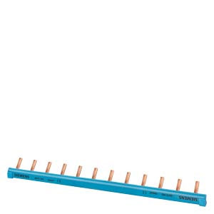 Pin busbar, 1-phase 10 mm2, 12 pins, Insulation blue can be cut, with end caps